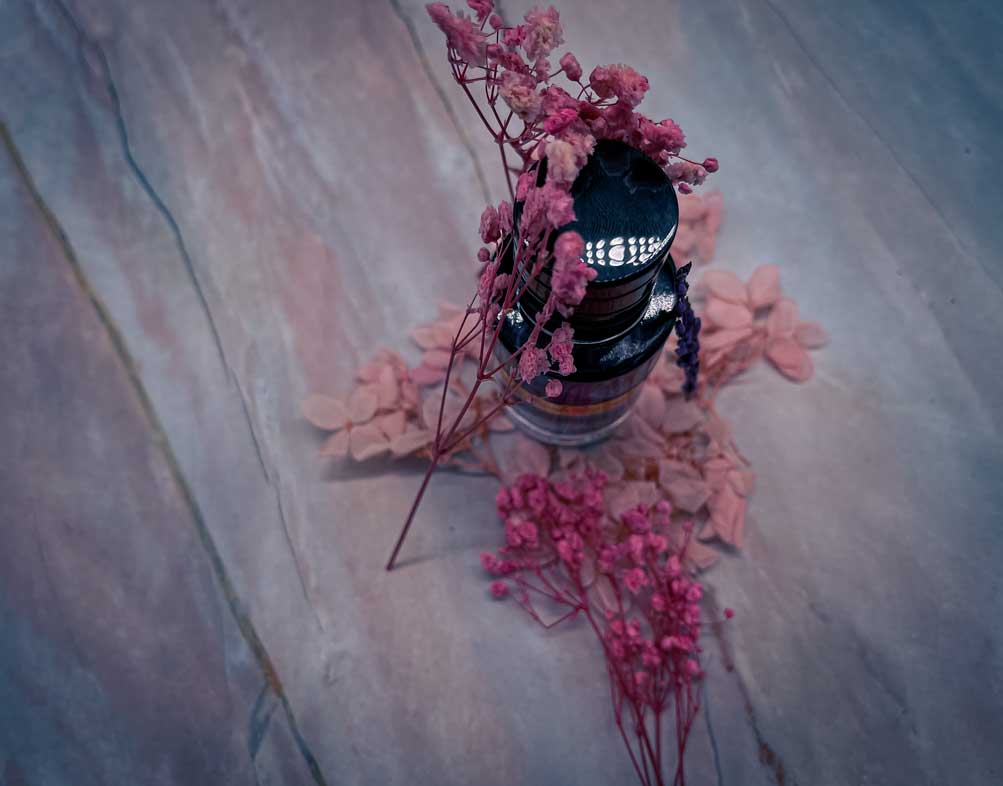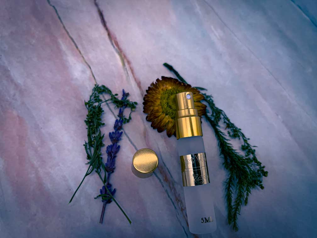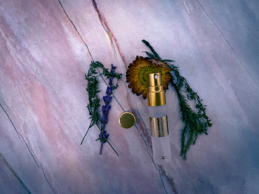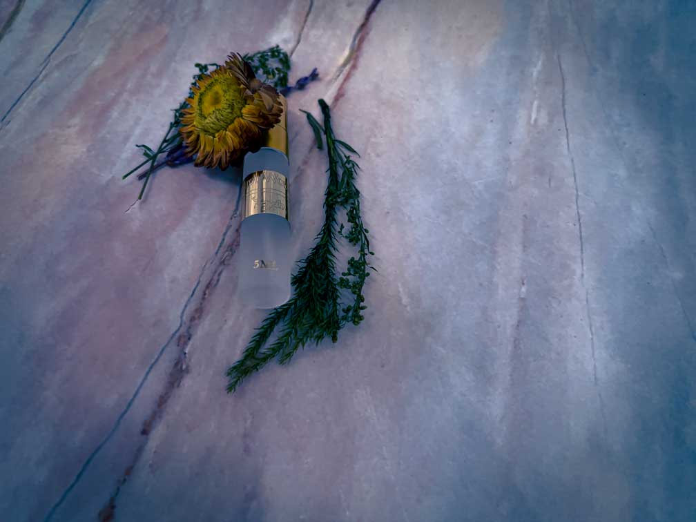 Stuck in a rift between worlds. One half: a field drenched in colors of dancing roses, freesia, and jasmine encamped within a zen garden. The other: a distant camphoric land. Born from the merging of two worlds, a recluse; succulent scents holding hands, fingers intertwined with floral notes. Captivated by singular spikes of camphor.