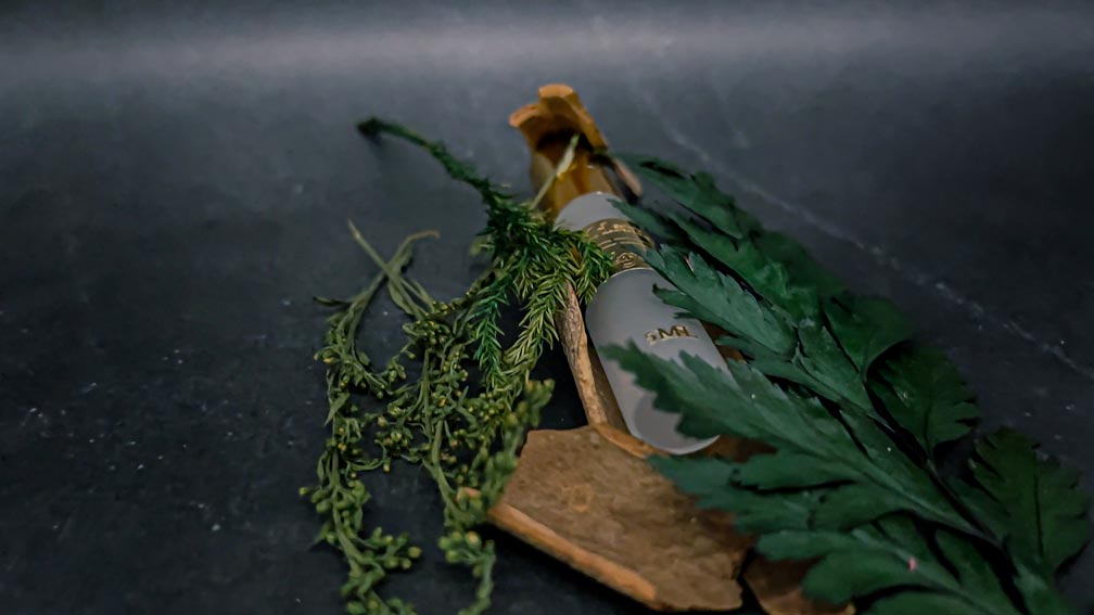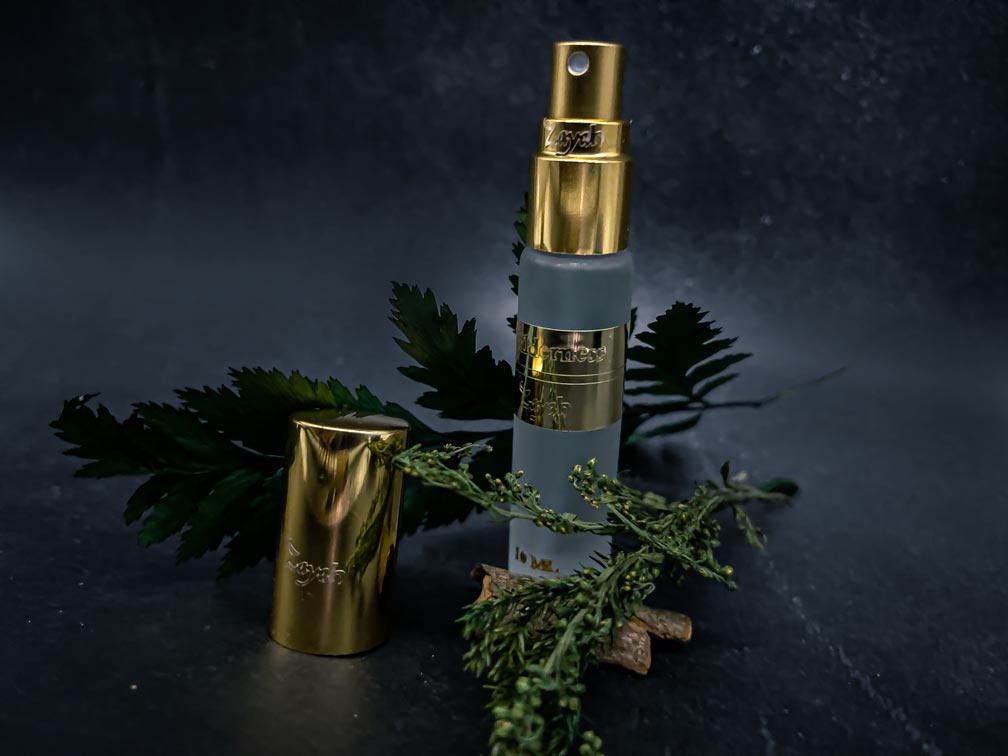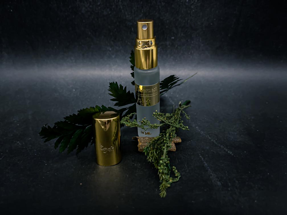 In the center of the forest, there lies a tree. Greater than eyes can comprehend. Older than time has ever known. One who is deemed as protector of the forest. From whence, a spiked herbal scent - of heated wood chips - with stunning lows of nutmeg and sharp highs of cypress permeate the forest. Enveloping knowledge pertaining to times of old within each note that is played. A master musician; who with its evergreen orchestra, play intoxicating woodsy notes of captivation for you to uncover.